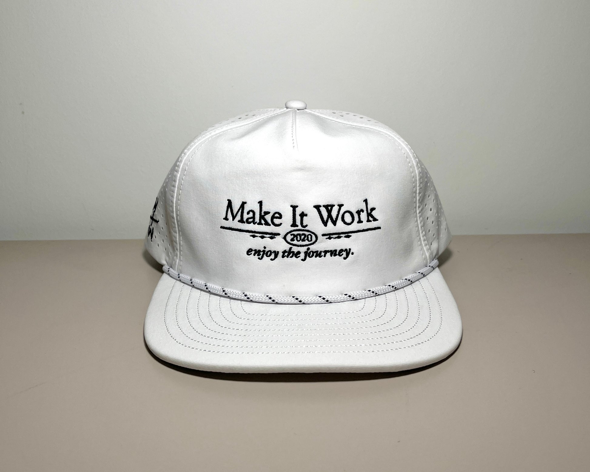 Stay cool, calm, and collected wherever the day takes you. This performance hat features a lightweight build with a perforated back for maximum airflow and comfort. Finished with the Make It Work logo and our reminder to enjoy the journey.